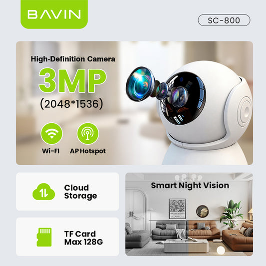 BAVIN SC800 3MP Pan/Tilt Home Security WiFi CCTV Camera | 2-Way Audio & App Control w/ Wall Stand