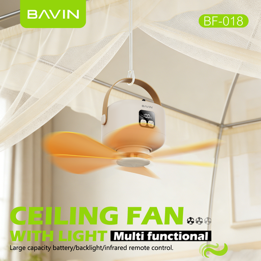 BAVIN BF018 5in1 Portable Outdoor Ultra Quiet Type-C Rechargeable Ceiling Fan w/Light, Remote Control