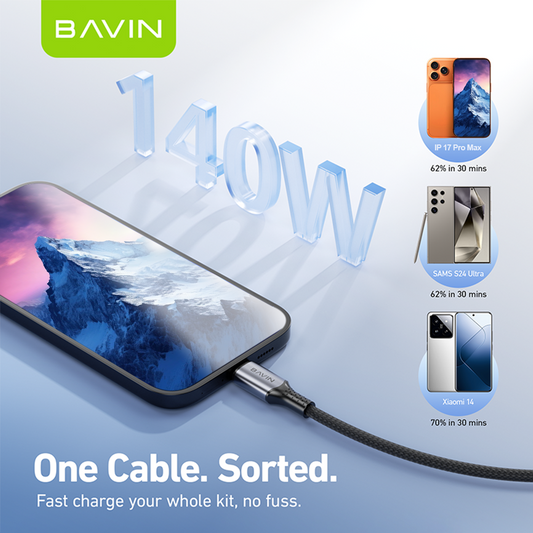 BAVIN CB422 140W PD 3.1 USB-C to USB-C Fast Charging Cable 1.2m Braided+PPS For Phone/Tablet/Laptop