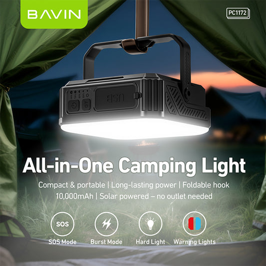 BAVIN PC1119 20000mAh Solar Charging Powerbank Built-In Cable Wireless Charging w/ Waterproof