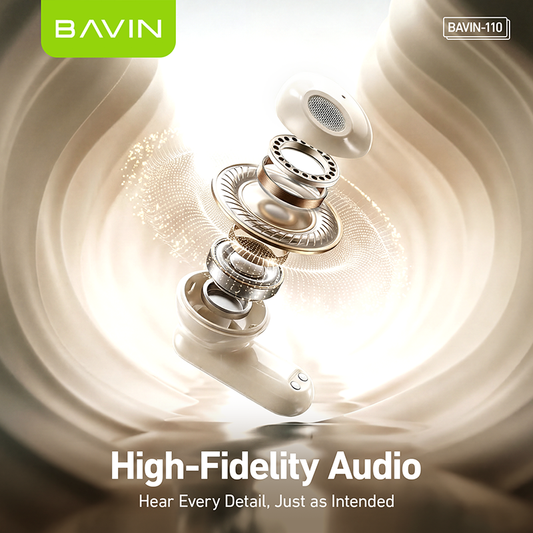 BAVIN BA110 2in1 TWS Hi-Res Audio Wireless Bluetooth Semi-in-ear + In-ear Earbuds |Smart LED Display