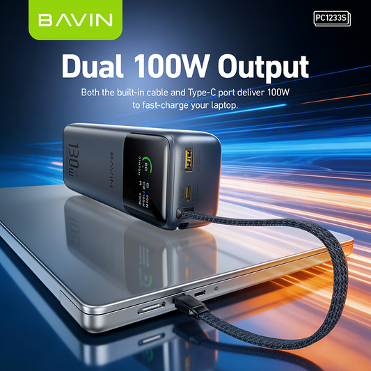 [CCC] BAVIN PC1233S 130W 20000mAh Fast Charging Powerbank Built-in Type-C Cable & TFT Digital Display