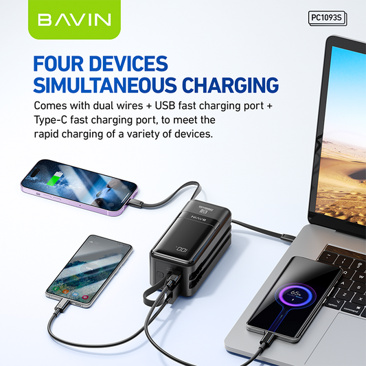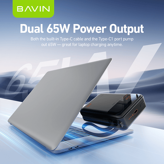 BAVIN PC1093 20000mAh 65W Fast Charging Powerbank w/ USB & Type-C Ports Input & Output Supports Laptop Charging