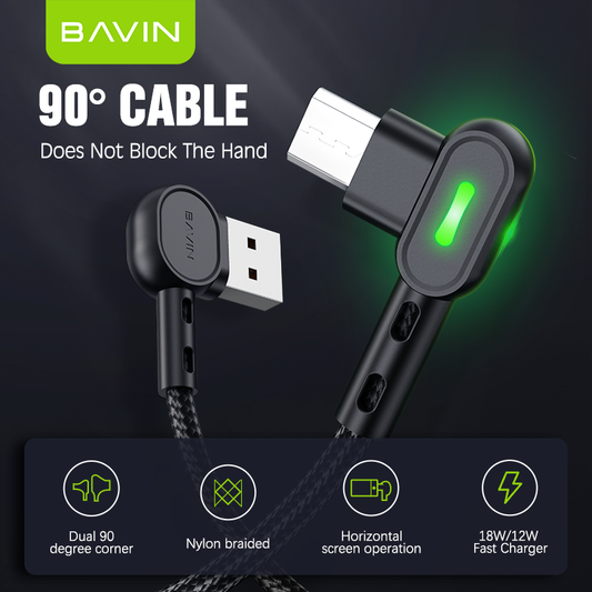 BAVIN U-CB211 60W Gaming Data Cable 90-Degree Angle Plug Charger for Micro iPh & Type-C Smartphones