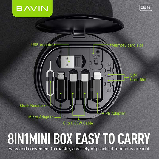 BAVIN U-CB320 8in1 Phone Charging Cable for Type-C / USB Adapter / Sim Injector / 60W Type-C to Type-C