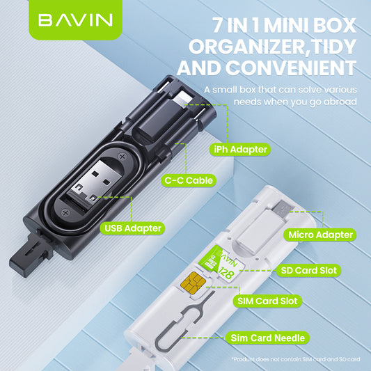 BAVIN U-CB299 7in1 Multifunctional Data Cable Storage Box Travel Essentials Supports 60W Fast Charge & Data Transmission