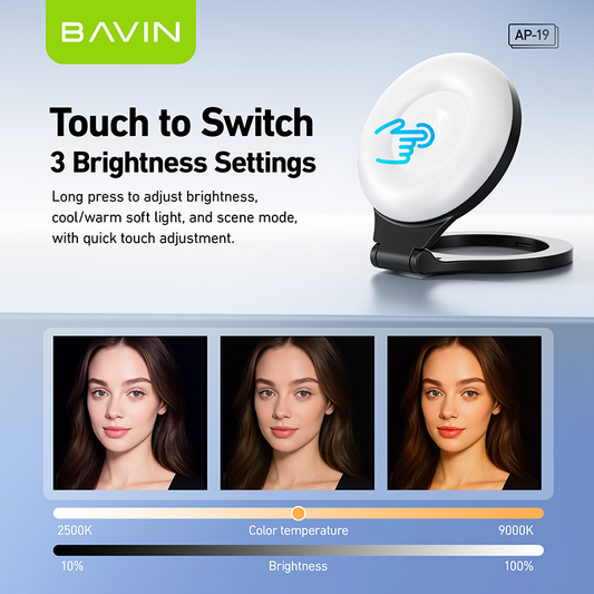 BAVIN D-Z-P19 Foldable Magnetic Fill Light w/ 3 Modes Adjustable Brightness & 120° Angle