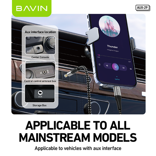 BAVIN H-XX-AUX56 Hi-Fi Audio Cable Nylon Braided for 3.5mm, iPhone & Type-C