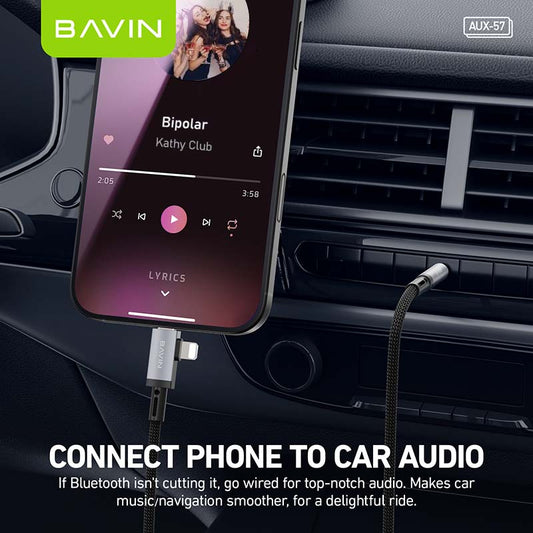 BAVIN H-AUX57 2 in 1 Hi-Fi Aux Cable 1 Meter for Type-C & iPhone to 3.5mm