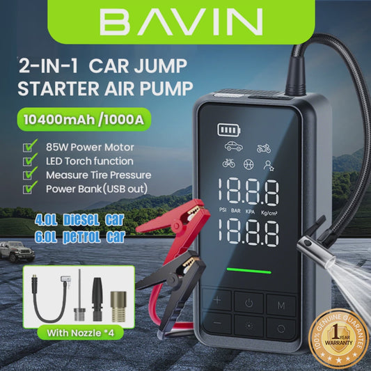 BAVIN Y-PC1160 2 in 1 Jump Starter & Air Compressor 10400mAh Powerbank