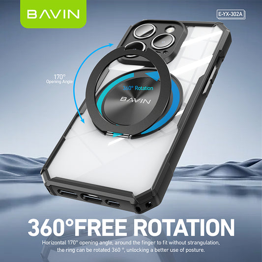 BAVIN YX301 Phone Case Transparent 360 Rotation Magnetic Ring For iPhone 14 & 15 Series