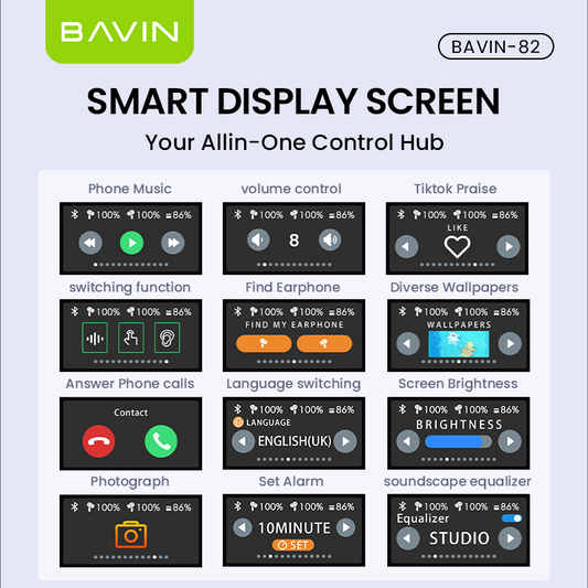 BAVIN HB-BA-81 Wireless Bluetooth Earbuds w/LCD Smart Touch Screen & HiFi Sound