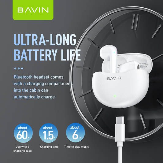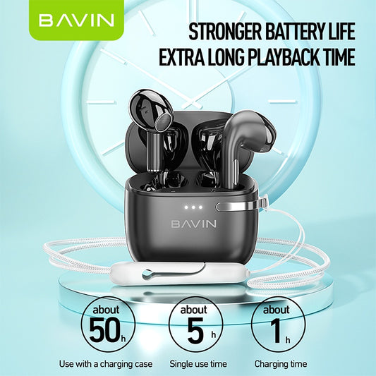 BAVIN HB-BA-59 TWS Wireless Bluetooth Earbuds w/ HiFi Stereo Sound, Long Battery, AI Assistant & Translation