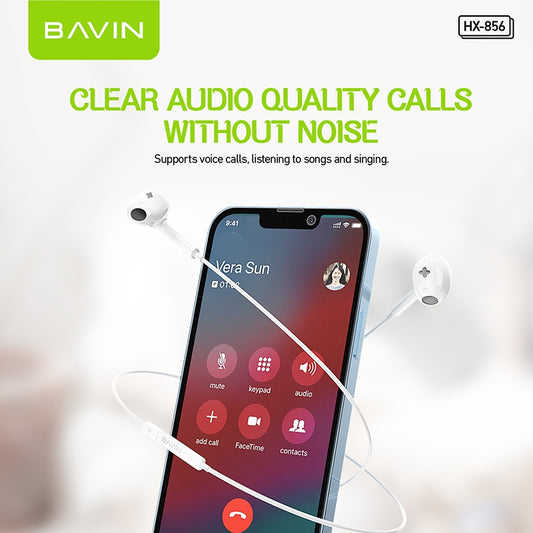 BAVIN H-I-HX860 Hi-Fi Wired Earphones for iPhone Series w/ Stereo Sound & Free Bag