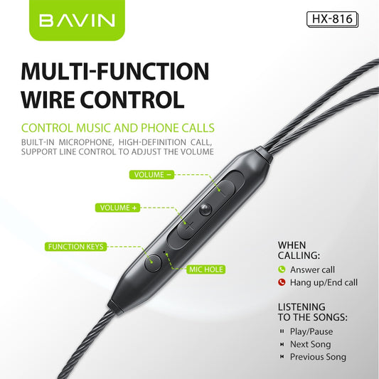 BAVIN HX856-XX HiFi Wired Earphones w/ Mic & Controller