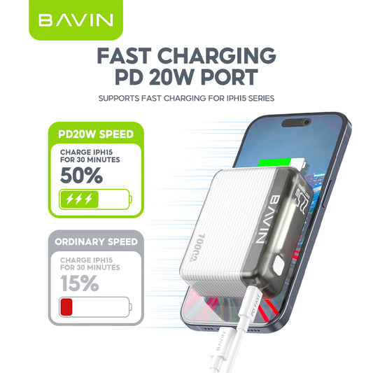 BAVIN Y-PC1133 5000mAh Ultra Thin Magnetic Wireless Powerbank w/ 20W Fast Charging Type-C In / Output for Smartphones
