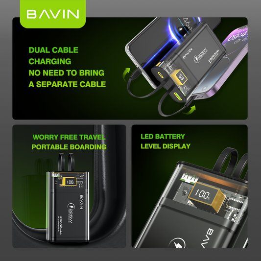 BAVIN Y-PC1003S 20000mAh Fast Charging Portable Powerbank W/ Built-In Charging Cable