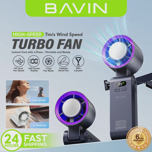 BAVIN BF-015 2-in-1 Handheld Mini Turbo Fan 17650RPM Rechargeable & 8000mAh Powerbank w/ 5-Speed Adjustable, LED Display