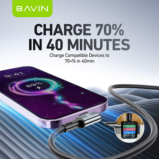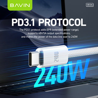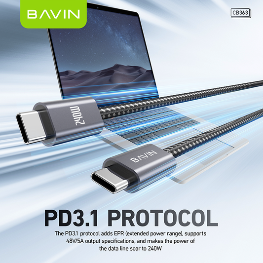 BAVIN CB363 PD 240W Nylon Braided Type-C to Type-C Smart Cable Super Fast Charging & Data Transfer for Laptop & Phones