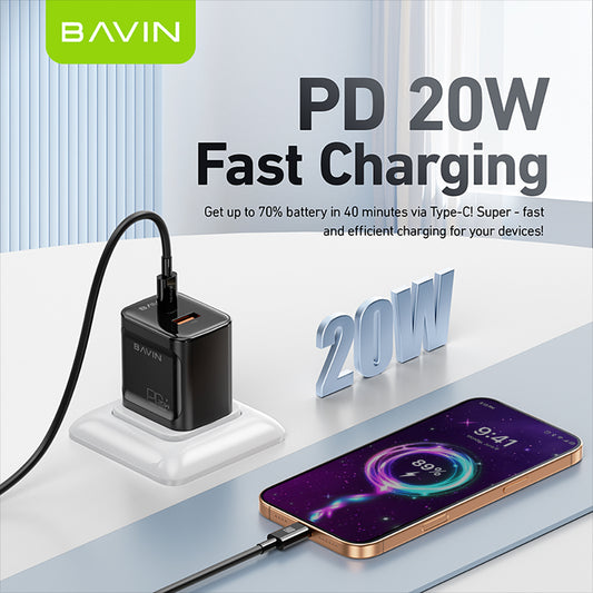 BAVIN C-PC2088 Universal 20W Fast Charging Adaptor Support PD + QC 3.0 Widely Compatibility for Android & iPhone Devices
