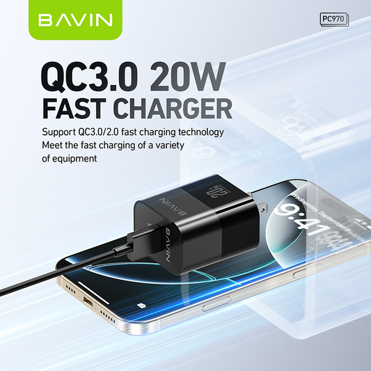 BAVIN C-PC970-XX 20W Fast Charger, QC3.0 for Micro USB, iPh & Type-C Devices