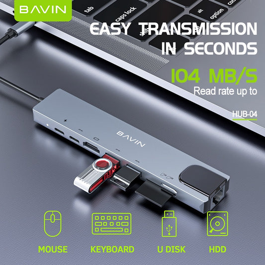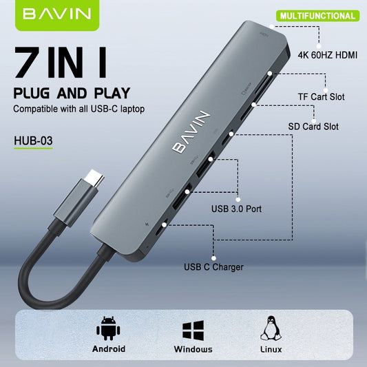 BAVIN U-H2-I3 7-in-1 Type-C Hub w/ HDMI & Dual USB 3.0 Ports