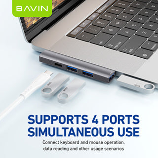 BAVIN U-O-55 3-in-1 Type-C to HDMI 4K Hub w/ High-Speed Data Transfer