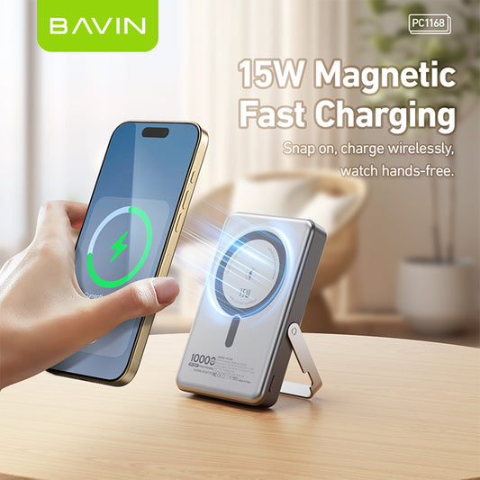 BAVIN PC1167 5000mAh / PC1168 10000mAh Portable 15W Magnetic Wireless Powerbank 22.5W+PD 20W Type-C Fast Charging w/Stand