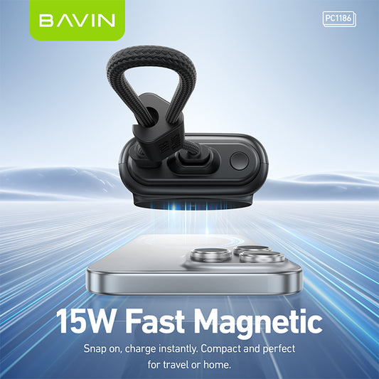 BAVIN Y-PC1186 10000mAh Mini Portable Magnetic Powerbank Wireless 15W Fast Charging w/ Detachable Dual Type-C Data Cable