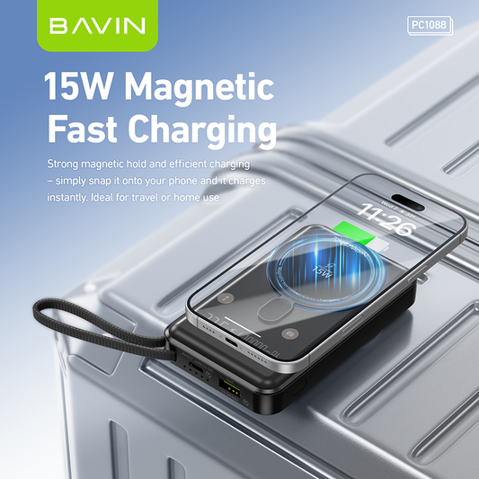 BAVIN Y-PC1086 10000mAh Wireless Magnetic Powerbank w/ Built-In Cable