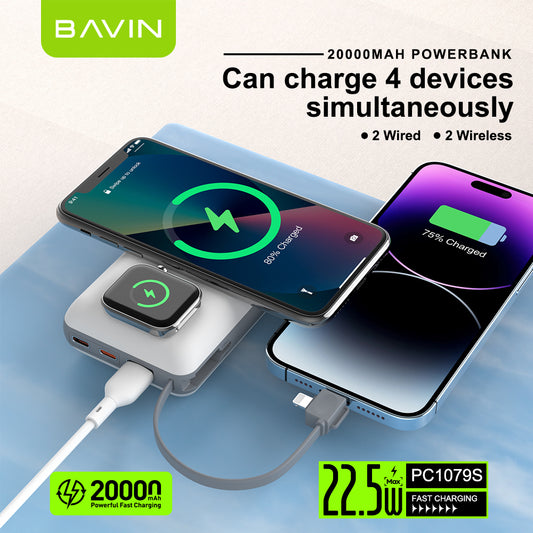 BAVIN Y-PC1079 20000mAh Wireless Power Bank w/ Smartwatch Charging