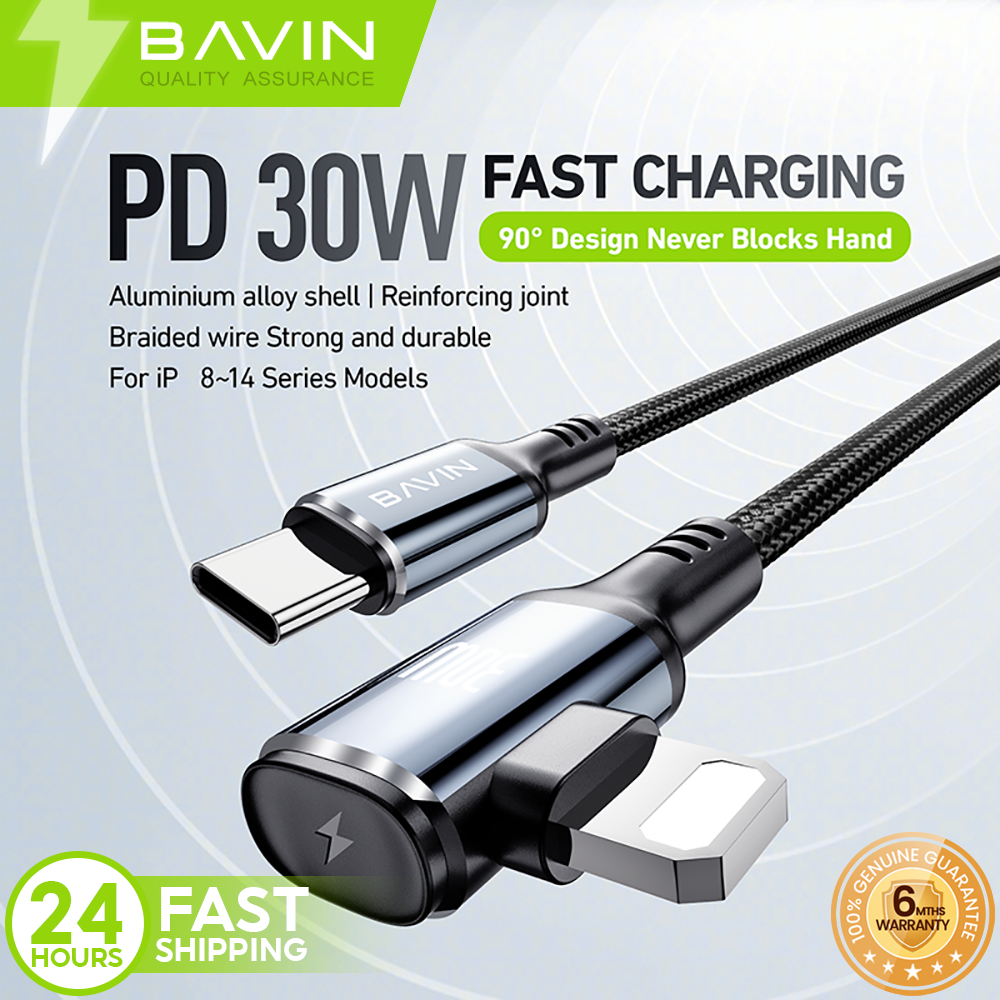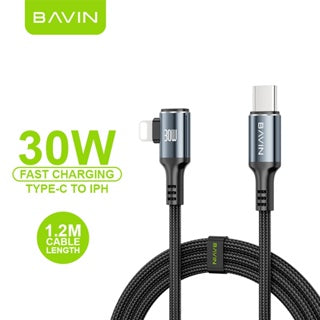 Brand: BAVIN Model: CB333 PD Pin Connector: Type-C to iPhone Max Power: 30W Function: Transmission / Charging Nylon Braided Cable Wire Cable Length: 1200mm Packaging Size: 85x160x20(MM)