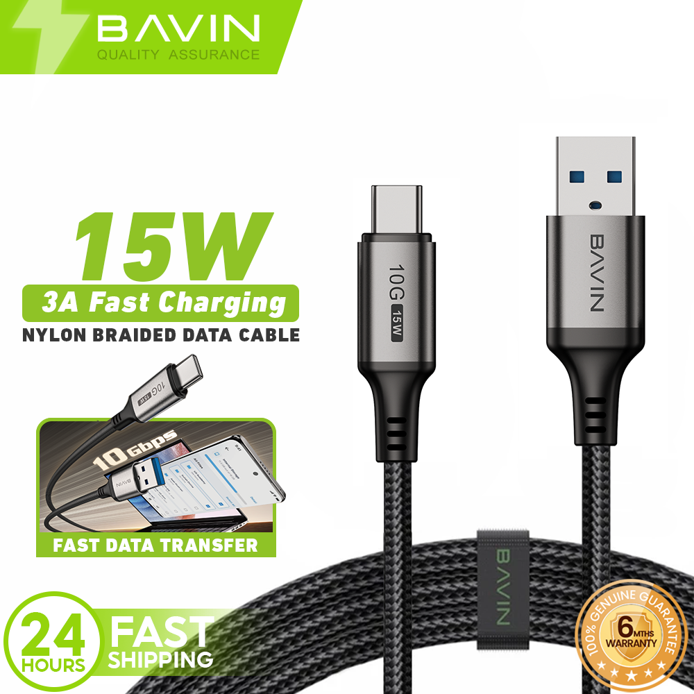 BAVIN CB409 3A 15W Fast Charging 2m Nylon Braided Type-C Data Cable w/ 10Gbps High-Speed Transfer