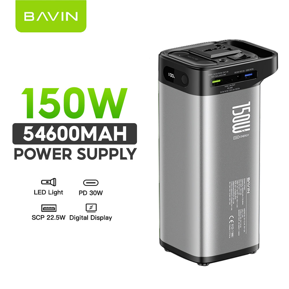 Name: 48000mAh / 54600mAh 150W Mini Portable Power Supply 22.5W w/ Power Socket Plug LED Flash Light & Digital Battery Fast Charging Powerbank