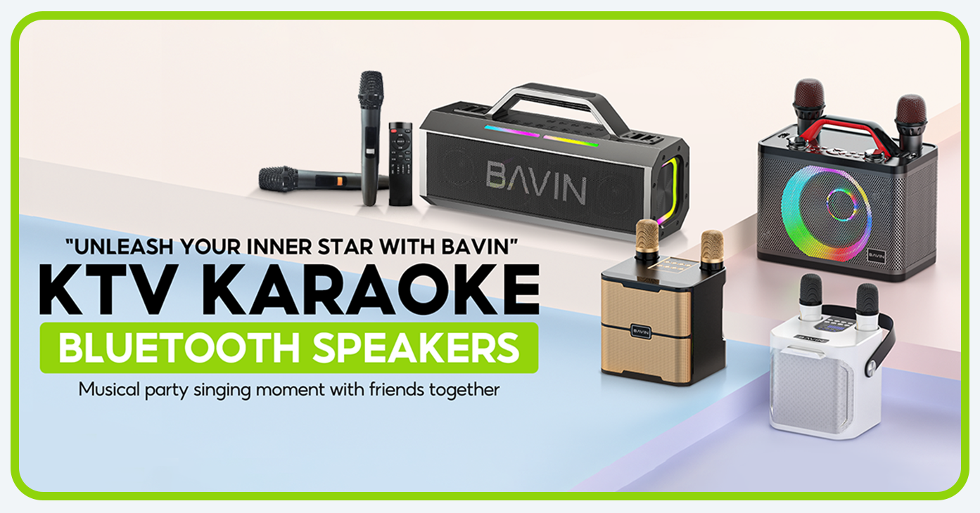 BAVIN DV-BM20 Professional Karaoke Bluetooth 5.0 Portable Speaker w/ Dual Microphones & Phone Stande