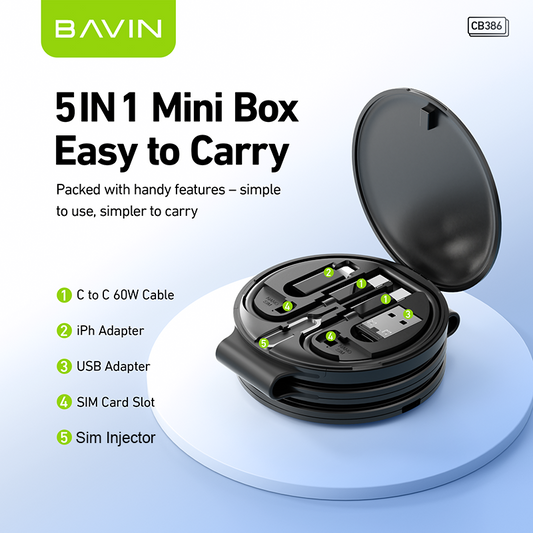 BAVIN C-W-CB386 5 in 1 Magnetic Wireless Charger Kit w/ USB iPh Converter & Card Slot