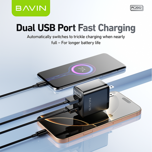 BAVIN C-PC2002-XX 12W Fast Charging Wall AC Adapter Dual USB Ports 2.4A