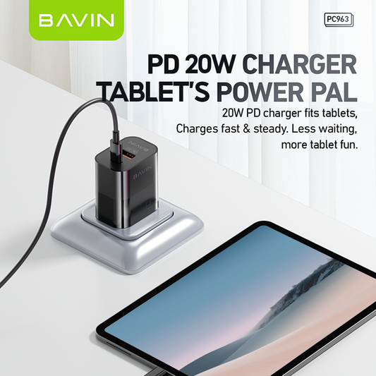 BAVIN C-PC963-PD Fast Charger w/ Dual Type-C & USB QC3.0