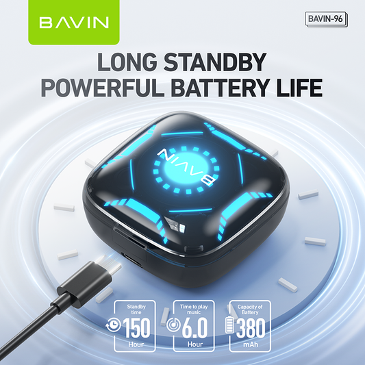 BAVIN HB-BA-96 HiFi Wireless RGB Bluetooth Earbuds w/ TWS & Noise Cancellation