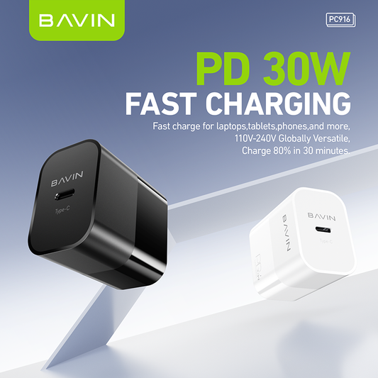BAVIN C-PC916 30W PD Fast Charging Wall Charger w/ 1 Meter Cable for iPhone & Android (Supports 17 Series)