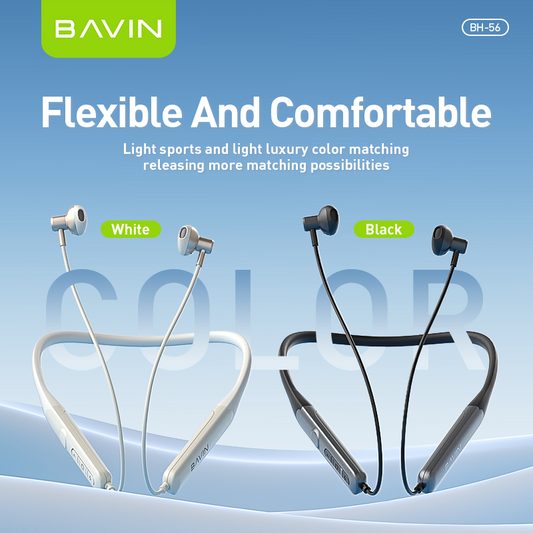 BAVIN HB-BH56 Hi-Fi Bluetooth Neckband Sport Headphones w/Built-In Microphone Compatible w/Android & iPh