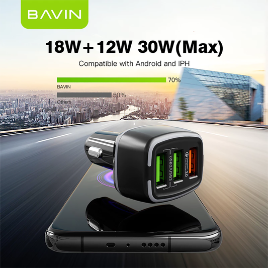 BAVIN PC896 Car Charger Multiple 3 Ports 18W & 12W Ultra Fast Charging USB QC3.0 Cell Phone Quick Charger Adapter