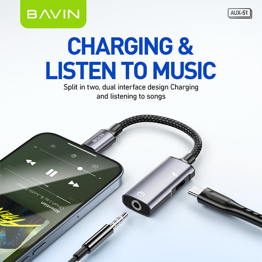 BAVIN H-C-AUX51 USB-C Audio & Charger Adapter Splitter