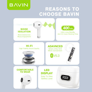 BAVIN HB-BA-19 TWS Wireless Bluetooth 5.3 Earbuds w/ HiFi Stereo Sound, Touch Control & Type-C Fast Charging