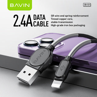 BAVIN U-CB121-XX 2.4A Quick Charging Data Cable 1.2m Spring Metal Tail for Reinforced Protection