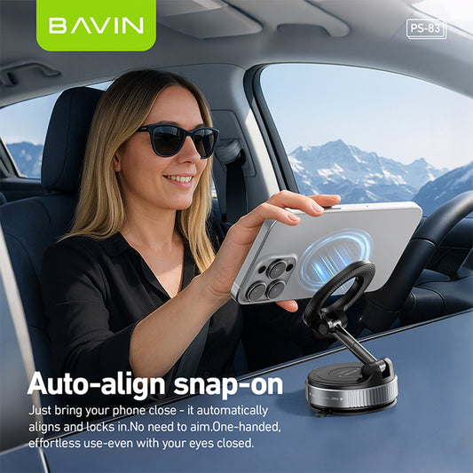 BAVIN D-S-PS86 Vacuum Magnetic Car Phone Holder Mount w/ 360° Adjustable for Smartphones