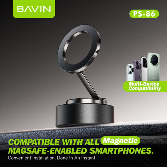 BAVIN D-S-PS85 Foldable Magnetic Vacuum Universal Car Mount 360° Rotating Phone Holder w/ Strong Magnetic Suction