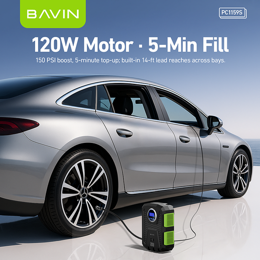 BAVIN Z-PC1158S Portable 150 PSI Car Air Pump Air Compressor Tire Inflator w/ LED Light & 4500mAh Powerbank