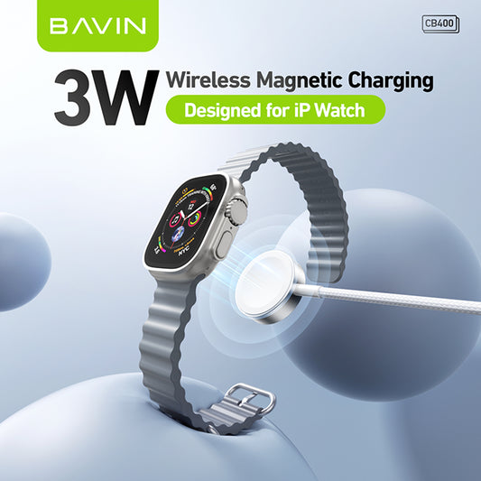 BAVIN CB400 3W Smartwatch Wireless Magnetic Charger w/ Type-C Cable for iPhone Series 1–10/SE/Ultra