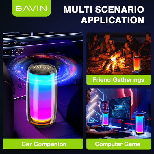 BAVIN BM38 Portable Party Bluetooth 5.3 Wireless Speaker w/ RGB Lights & 80W Powerful Sound